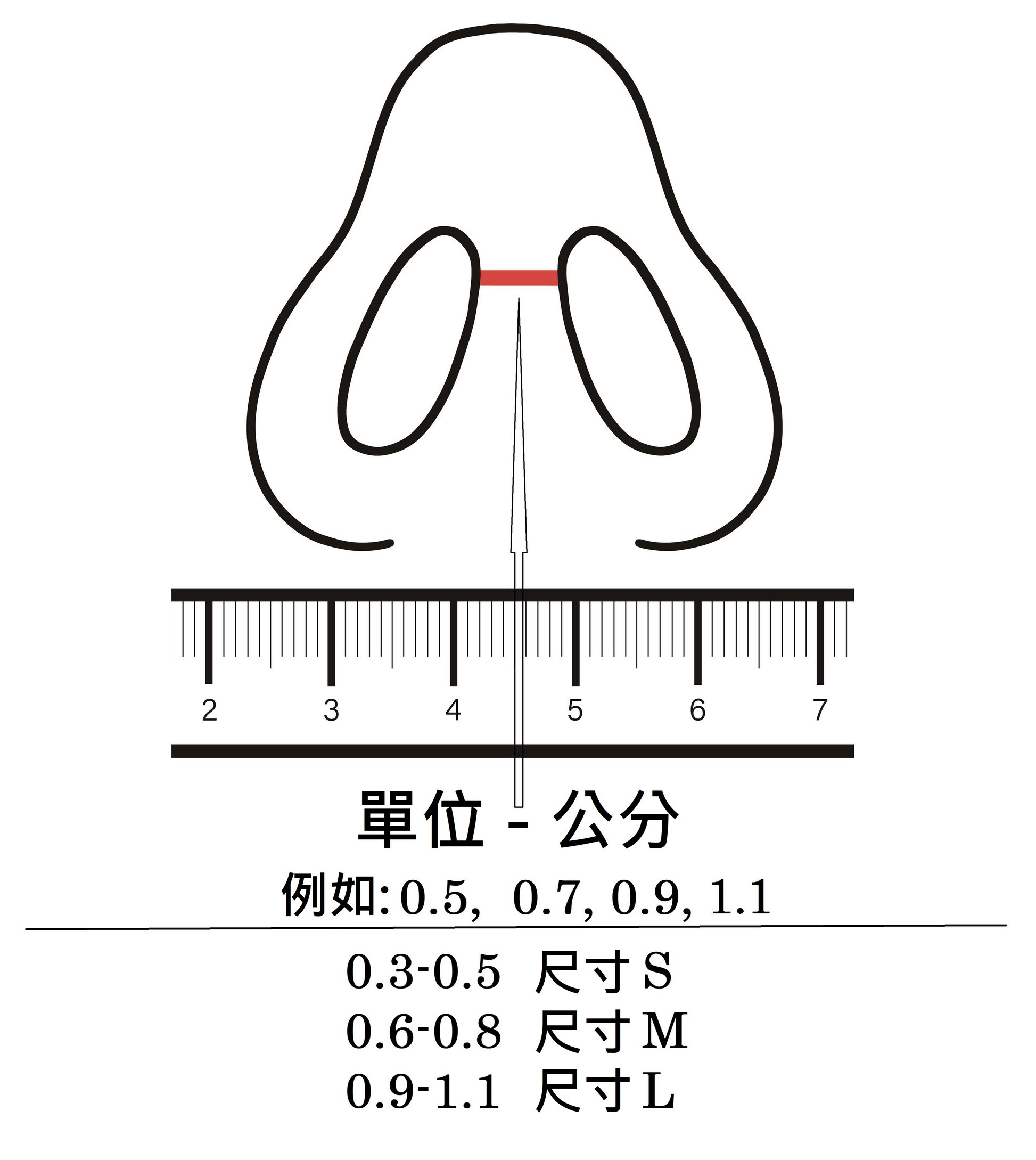 尺寸測量 - 為了穿戴舒適性,我們提供了三種尺寸供您選擇,基本上東方人的鼻型較小, 尺寸 M 基本上是可以的,但為了確保最佳的舒適度與服貼性,還是建議您測量。
